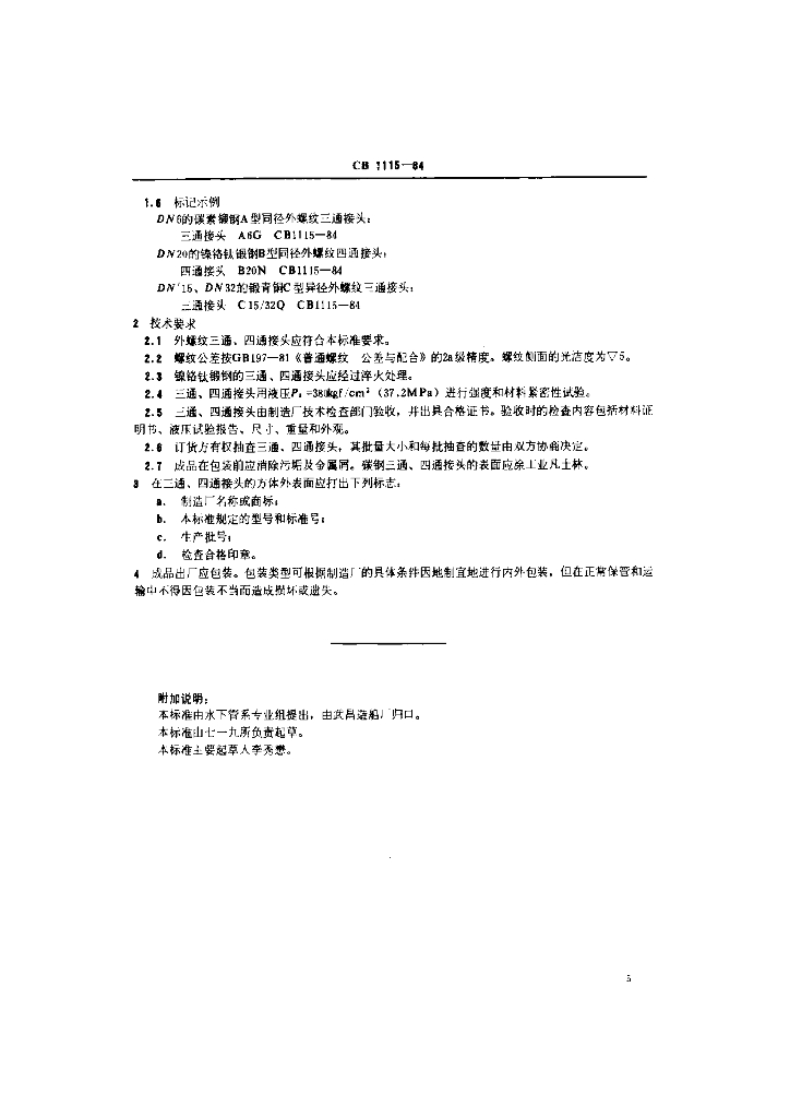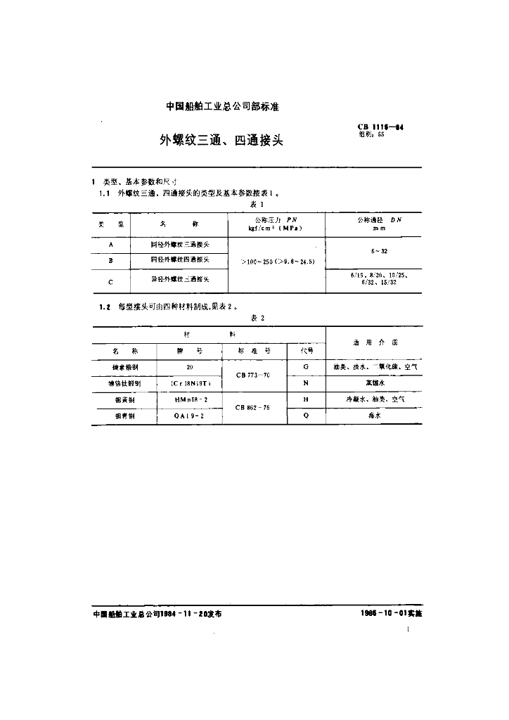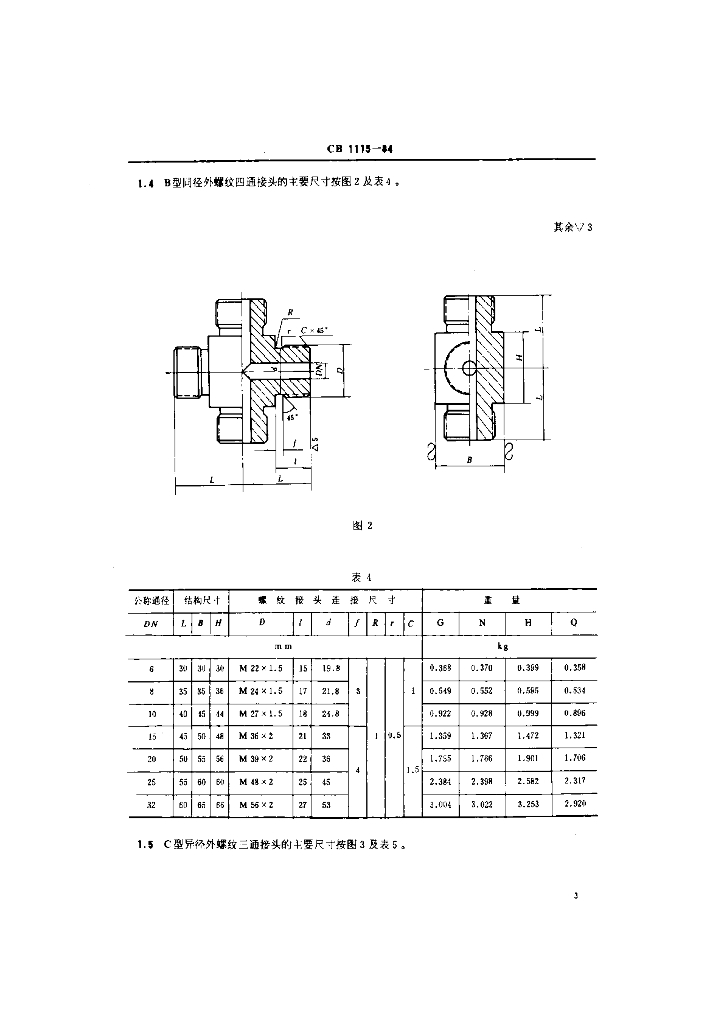 CB 1115-1984 外螺纹三通、四通接头