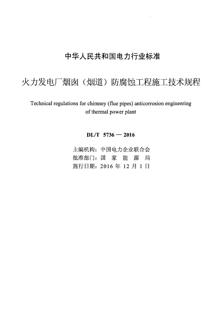 DL/T 5736-2016 火力发电厂烟囱(烟道)防腐蚀工程施工技术规程