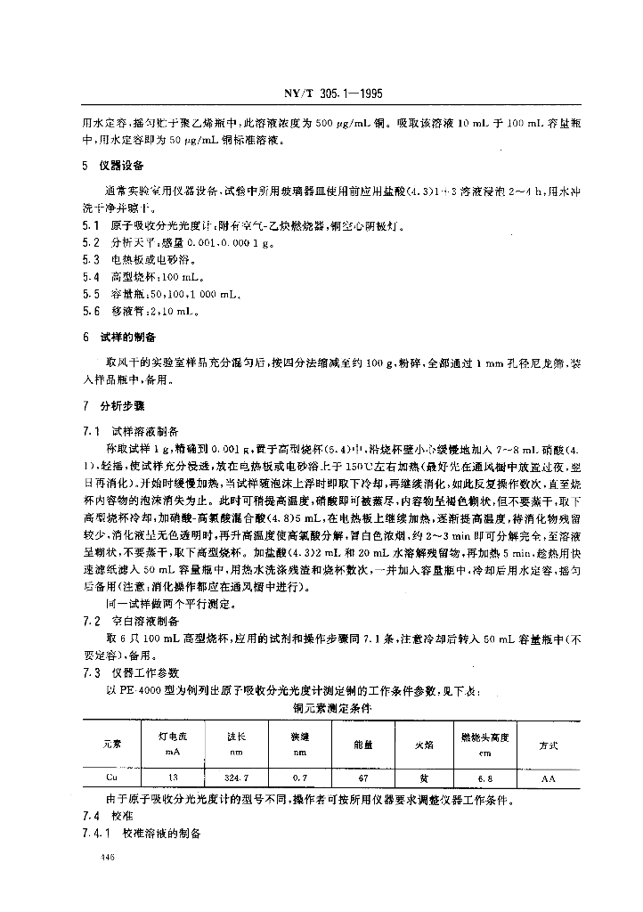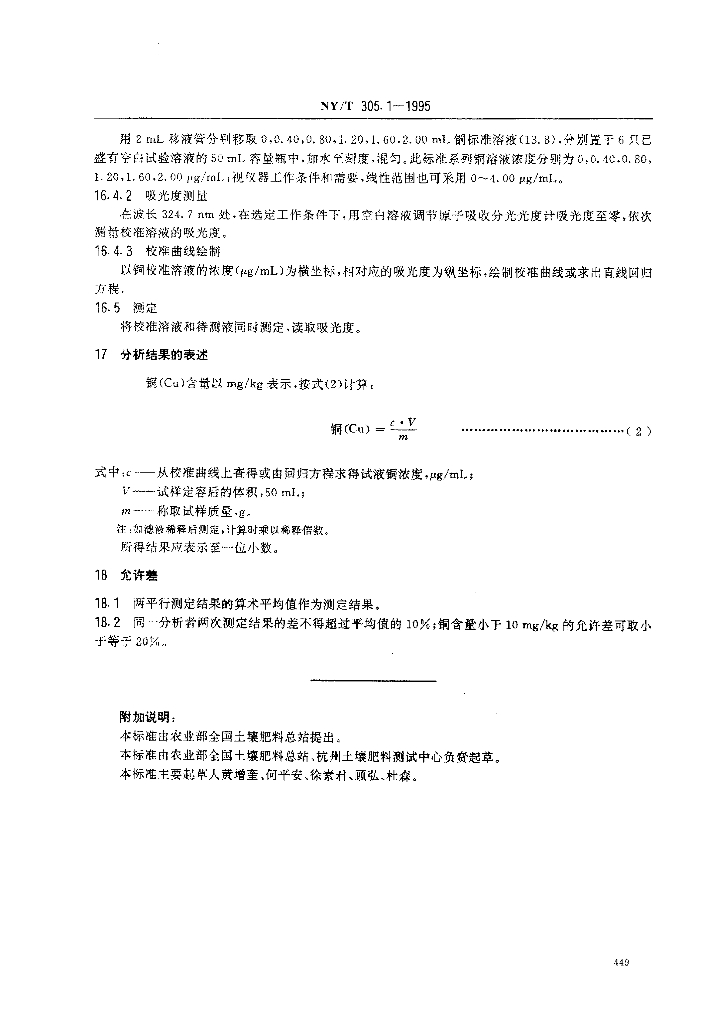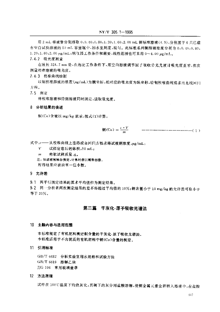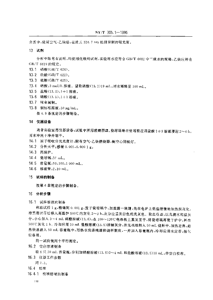 NY/T 305.1-1995 有机肥料铜的测定方法
