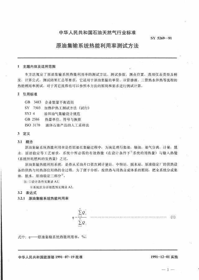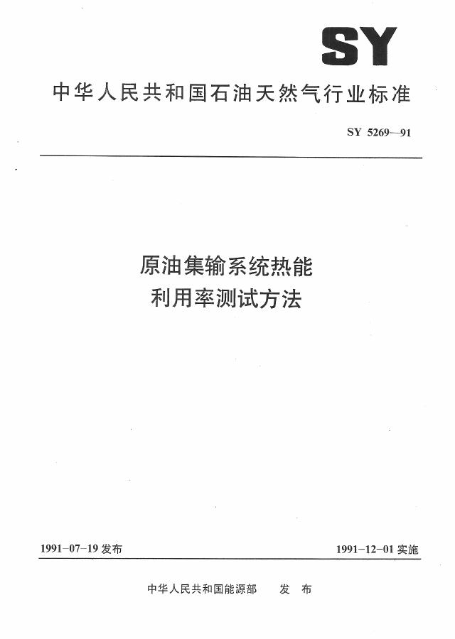SY 5269-1991 原油集输系统热能利用率测试方法