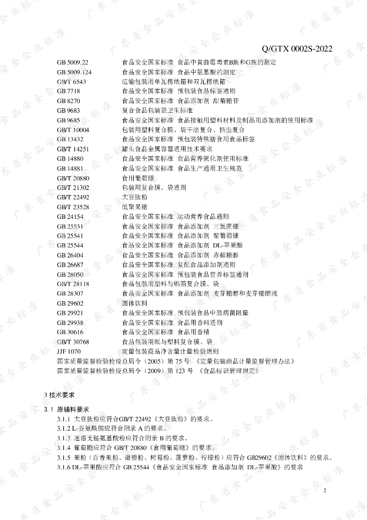 Q/GTX 0002S-2022 运动后恢复类运动营养食品