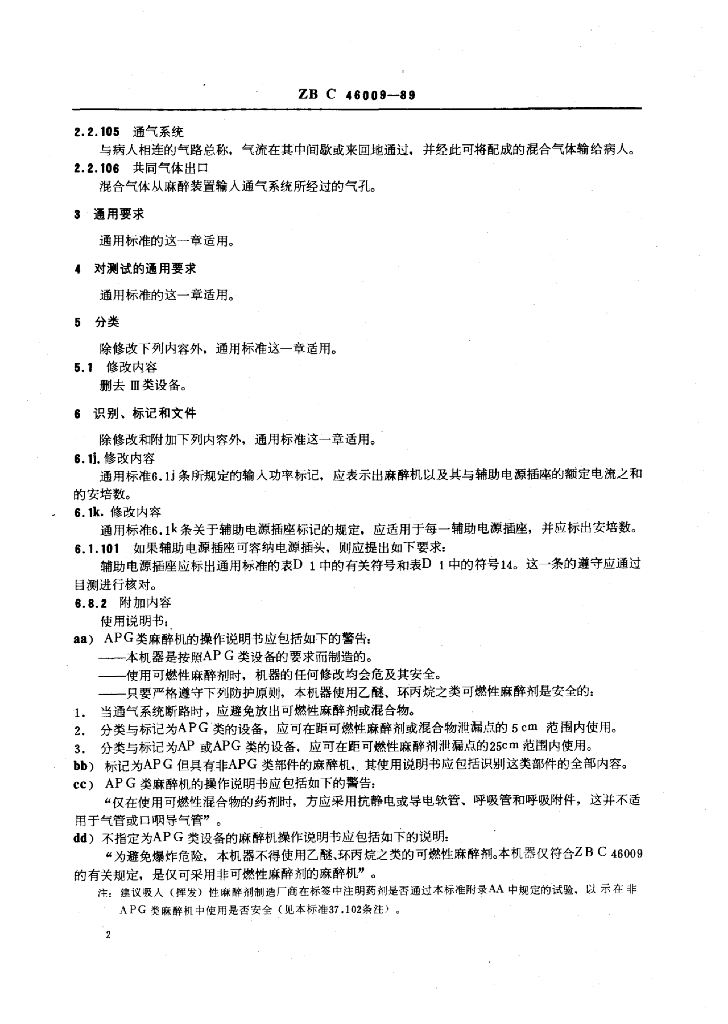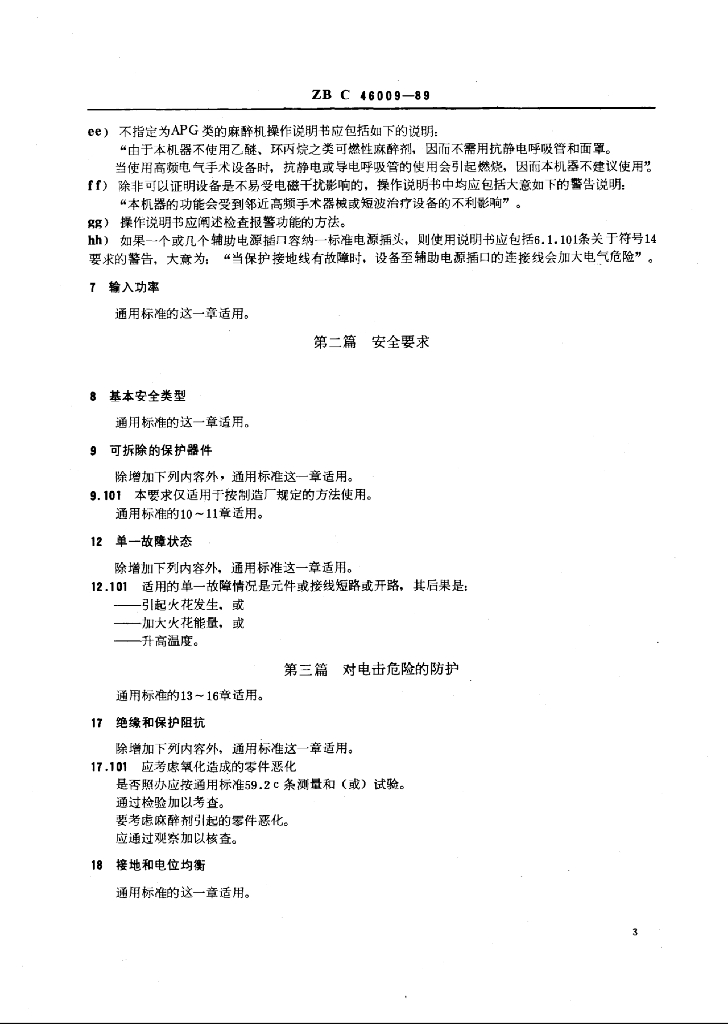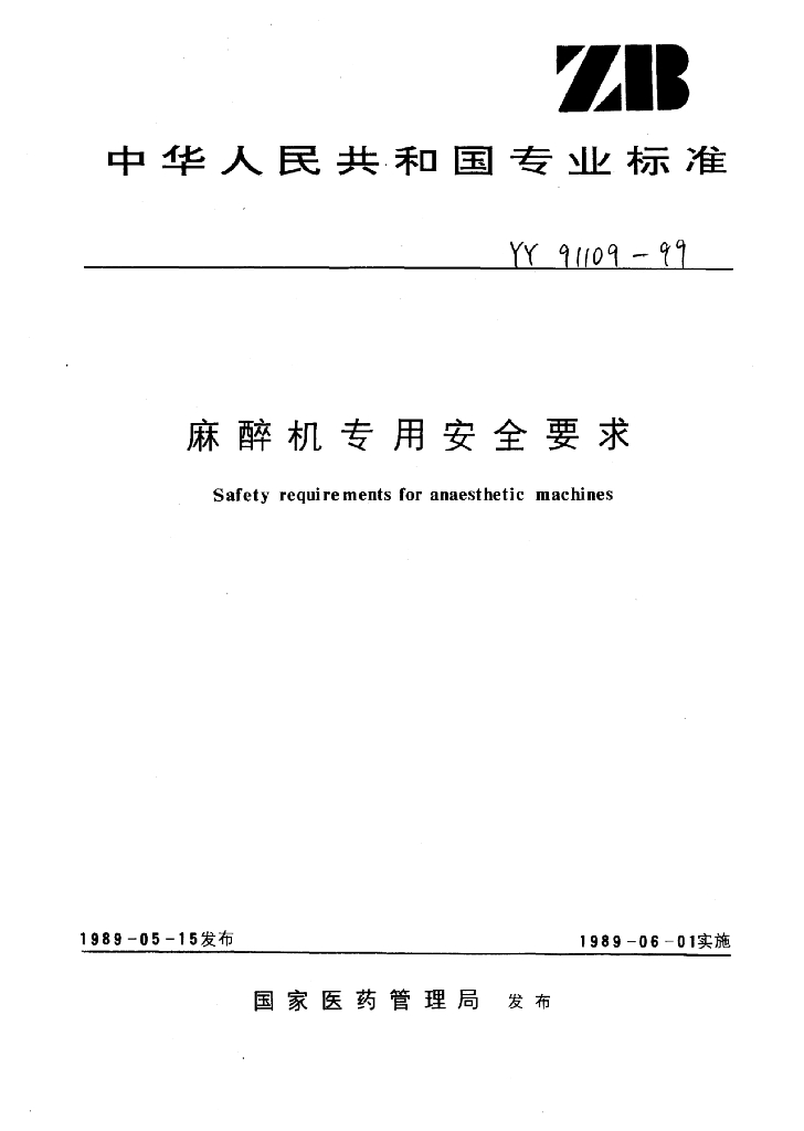 YY 91109-1999 麻醉机专用安全要求