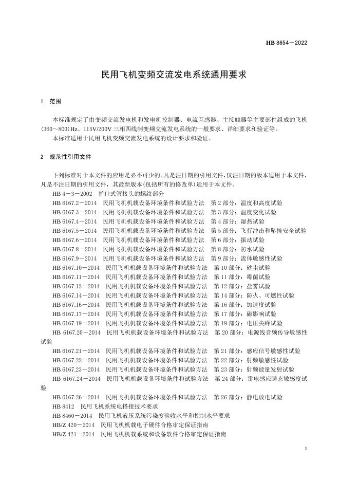 HB 8654-2022 民用飞机变频交流发电系统通用要求