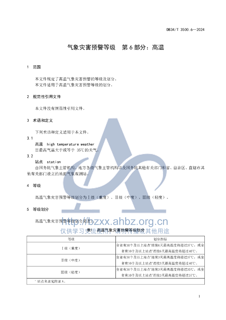 DB34/T 3500.6-2024 气象灾害预警等级 第6部分:高温