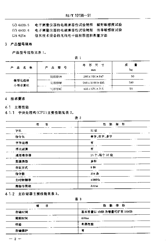 SJ/T 10198-1991 TJ2220微型化超级小型计算机