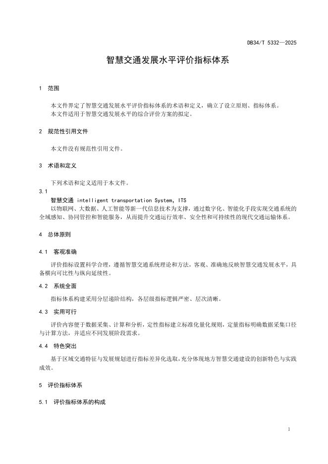 DB34/T 5332-2025 智慧交通发展水平评价指标体系