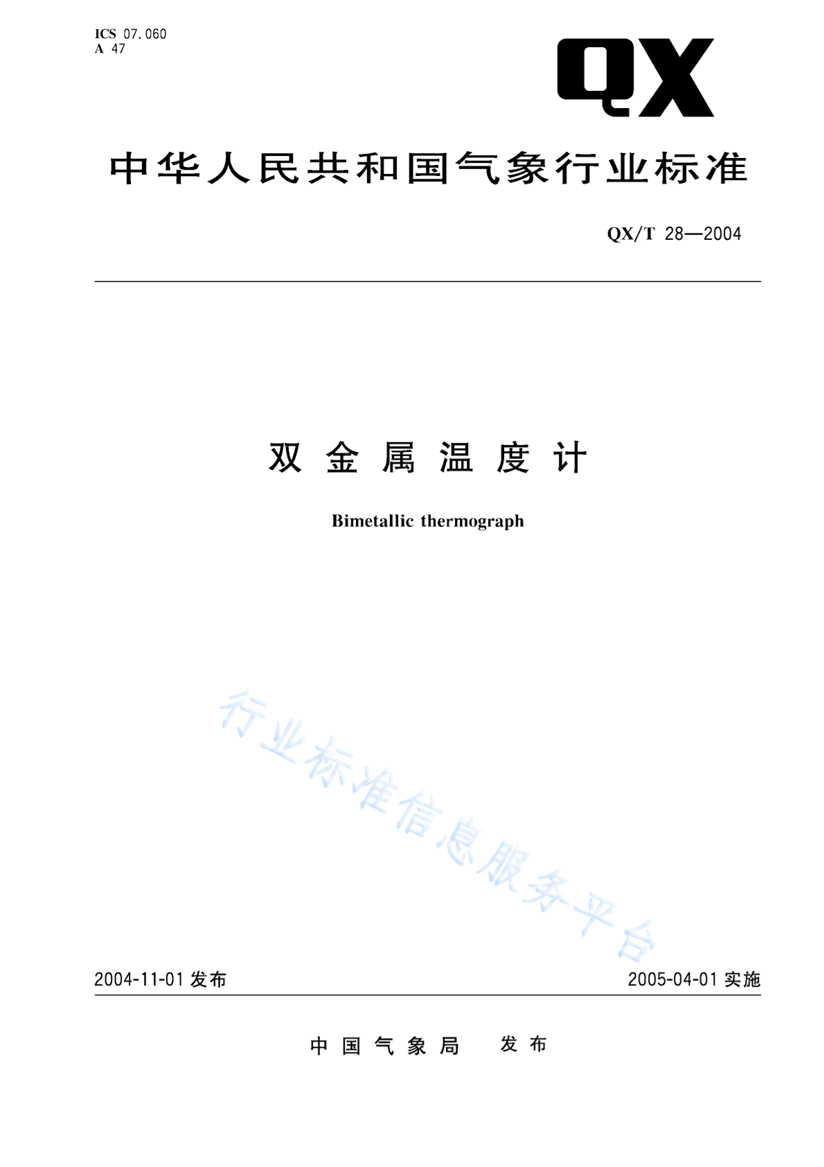 QX/T 28-2004 双金属温度计