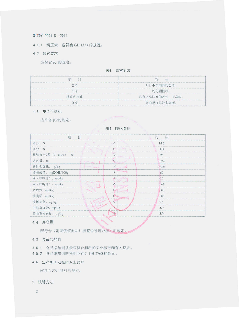 Q/ZQY 0001S-2011 糯玉米碴