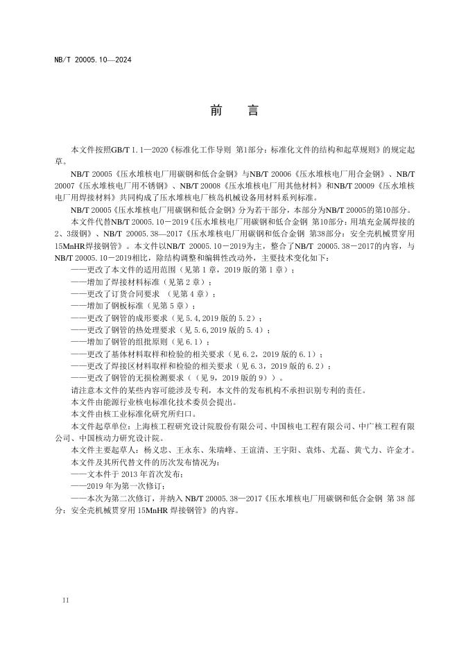 NB/T 20005.10-2024 压水堆核电厂用碳钢和低合金钢 第10部分:用填充金属焊接的2、3级设备用钢管