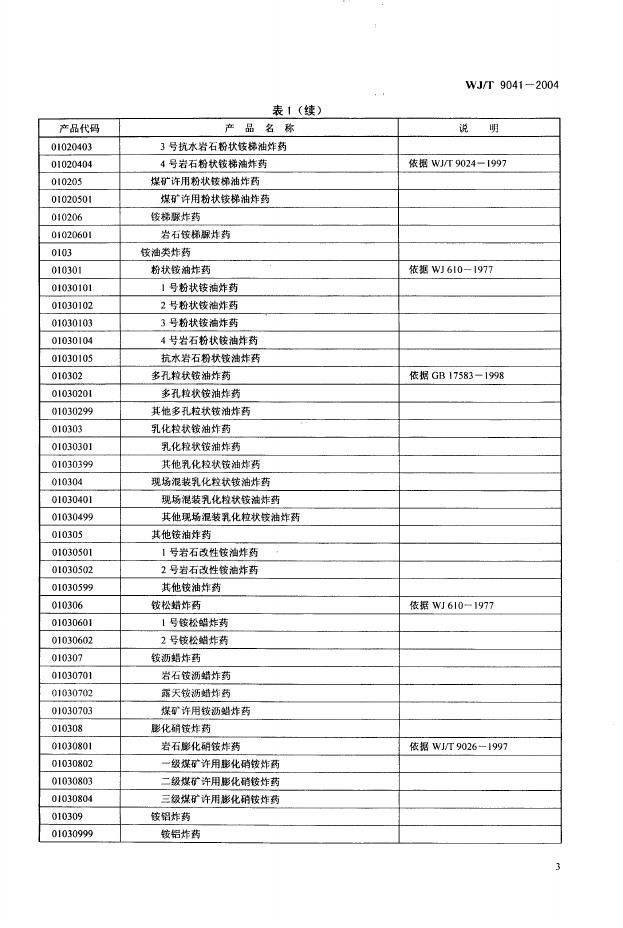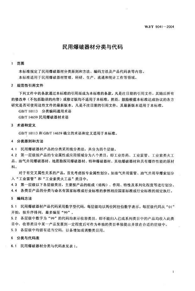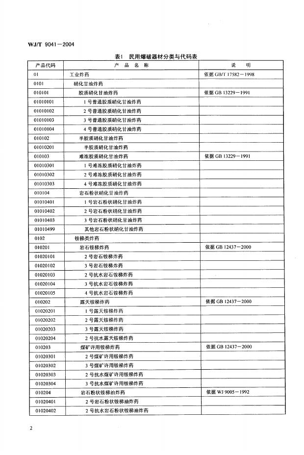 WJ/T 9041-2004 民用爆破器材分类与代码