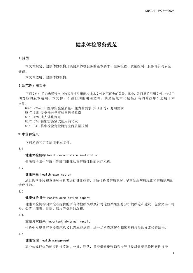 DB50/T 1926-2025 健康体检服务规范