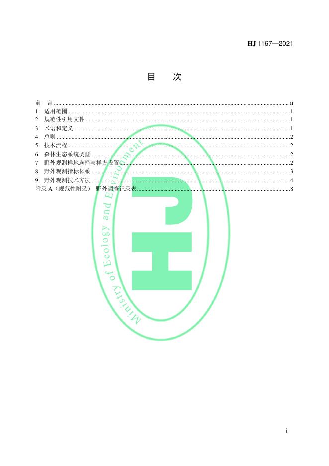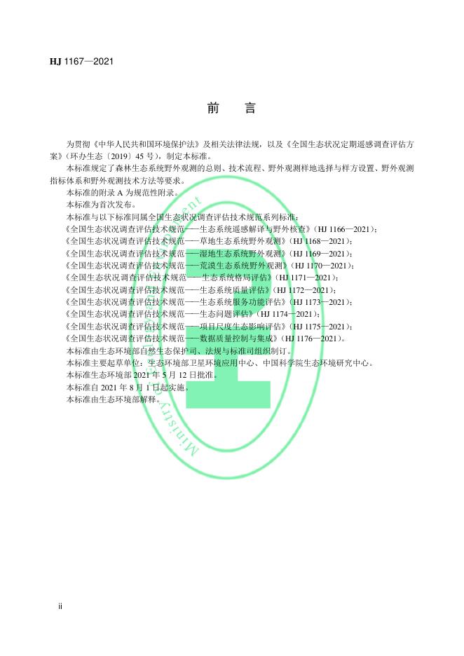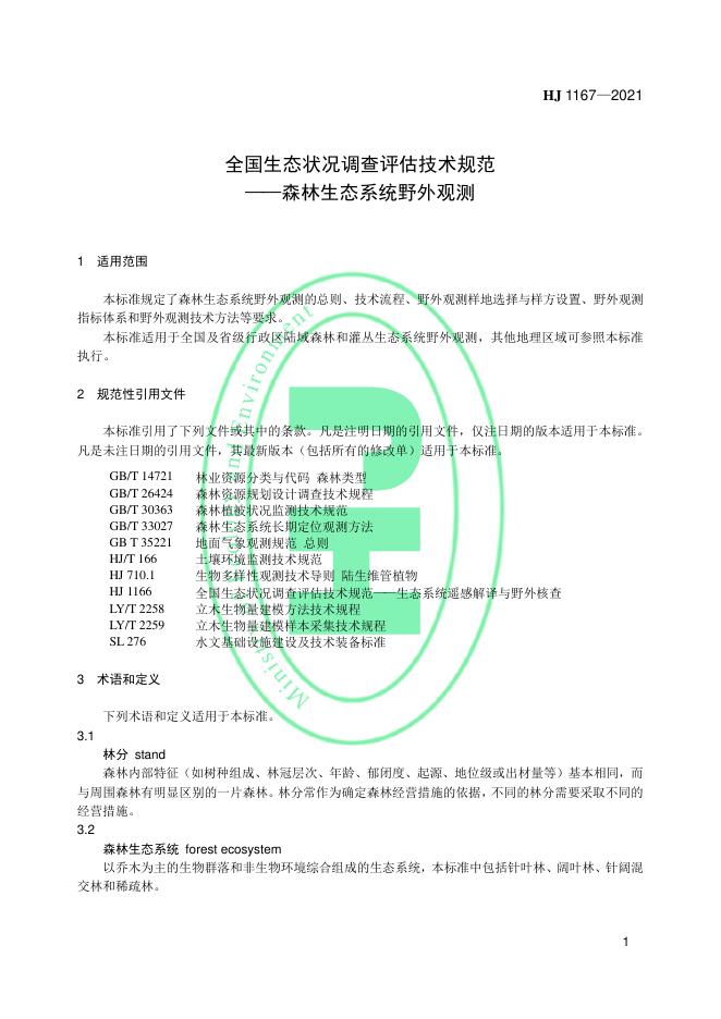 HJ 1167-2021 全国生态状况调查评估技术规范——森林生态系统野外观测