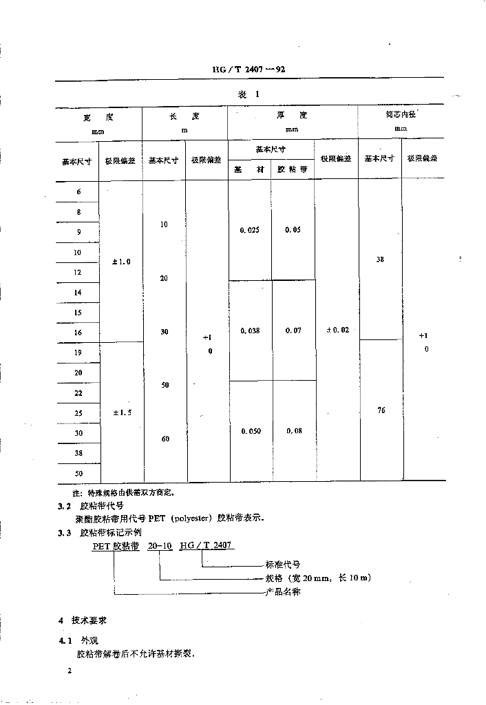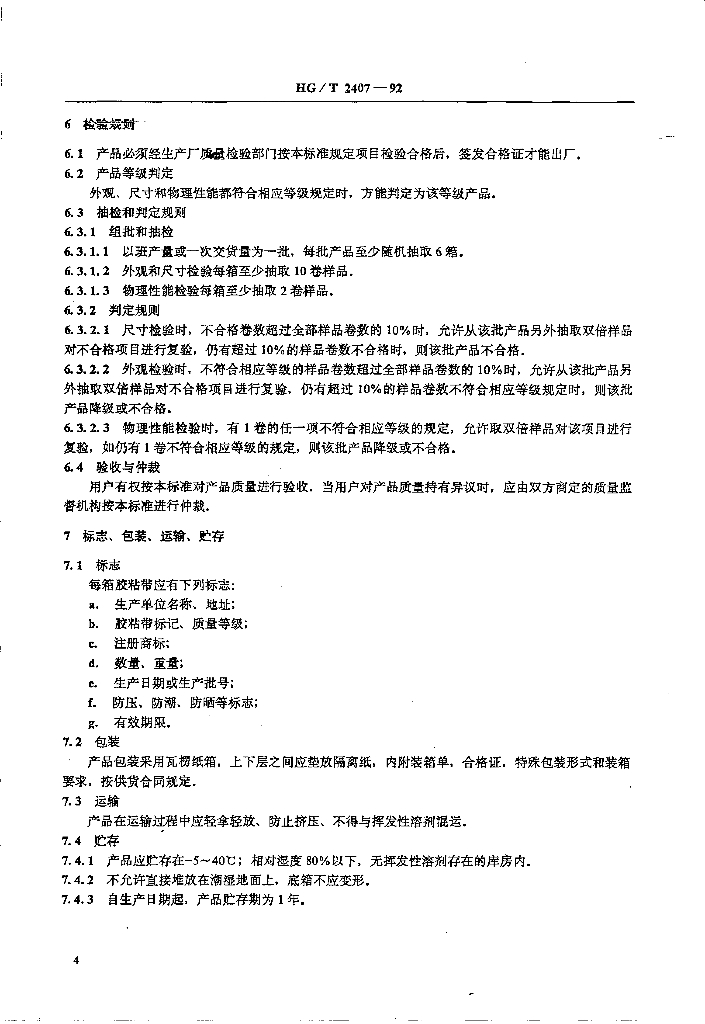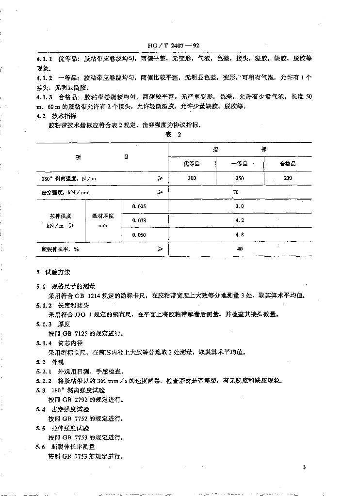 HG/T 2407-1992 电气绝缘用聚酯压敏胶粘带