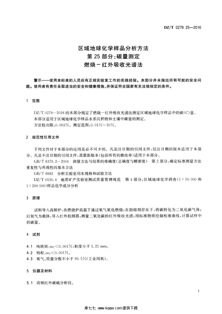 DZ/T 0279.25-2016 区域地球化学样品分析方法 第25部分:碳量测定燃烧-红外吸收光谱法