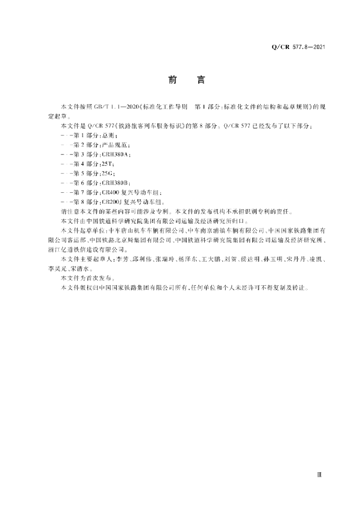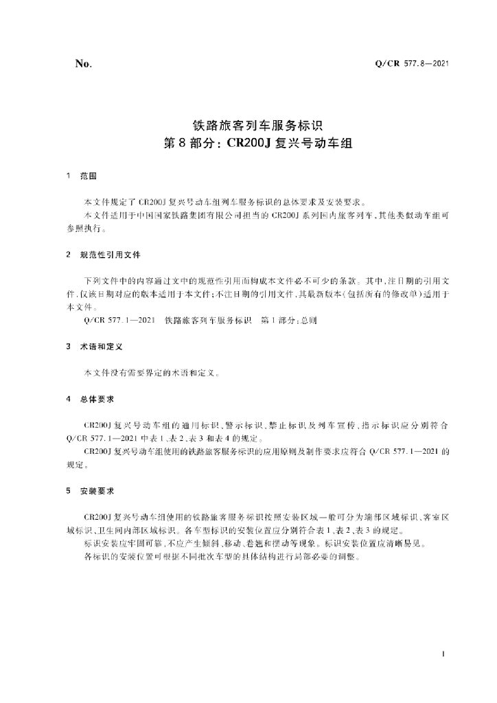 Q/CR 577.8-2021 铁路旅客列车服务标识 第8部分:CR200J复兴号动车组