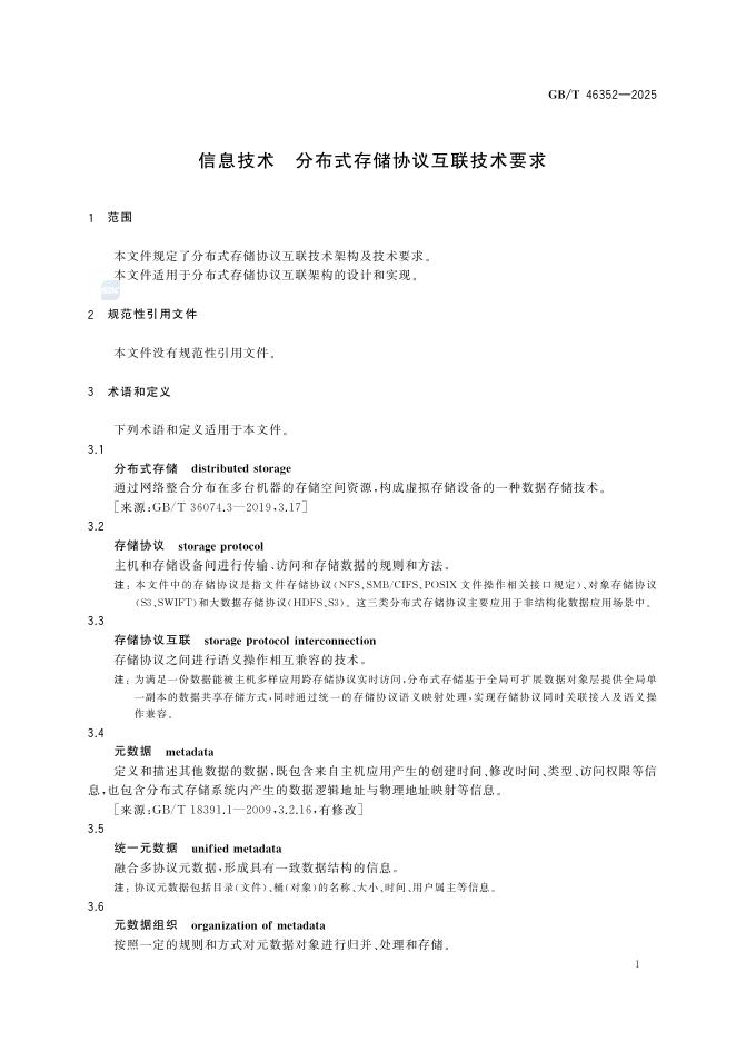 GB/T 46352-2025 信息技术 分布式存储协议互联技术要求