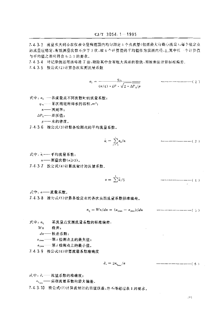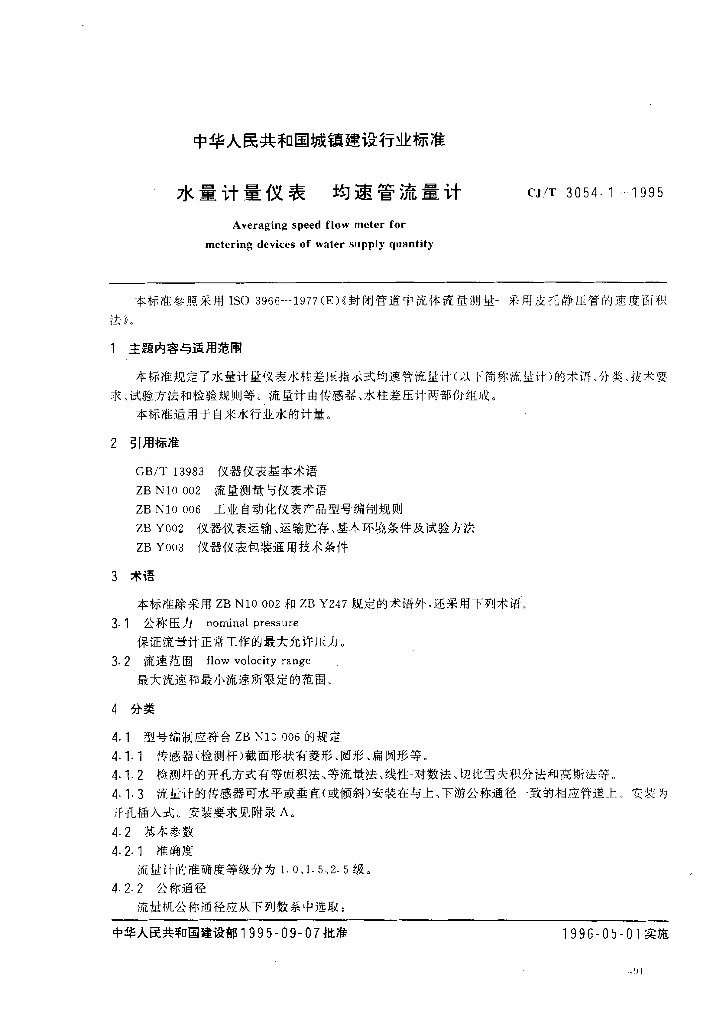 CJ/T 3054.1-1995 水量计量仪表 均速管流量计