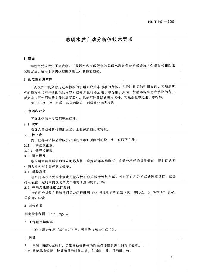 HJ/T 103-2003 总磷水质自动分析仪技术要求