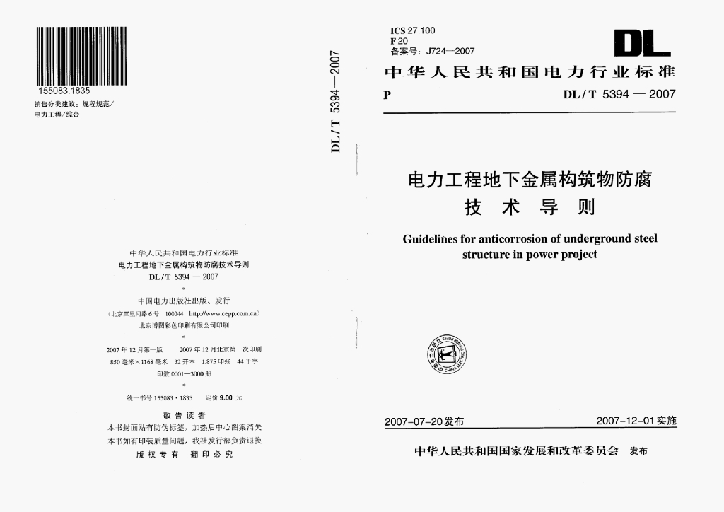 DL/T 5394-2007 电力工程地下金属构筑物防腐技术导则