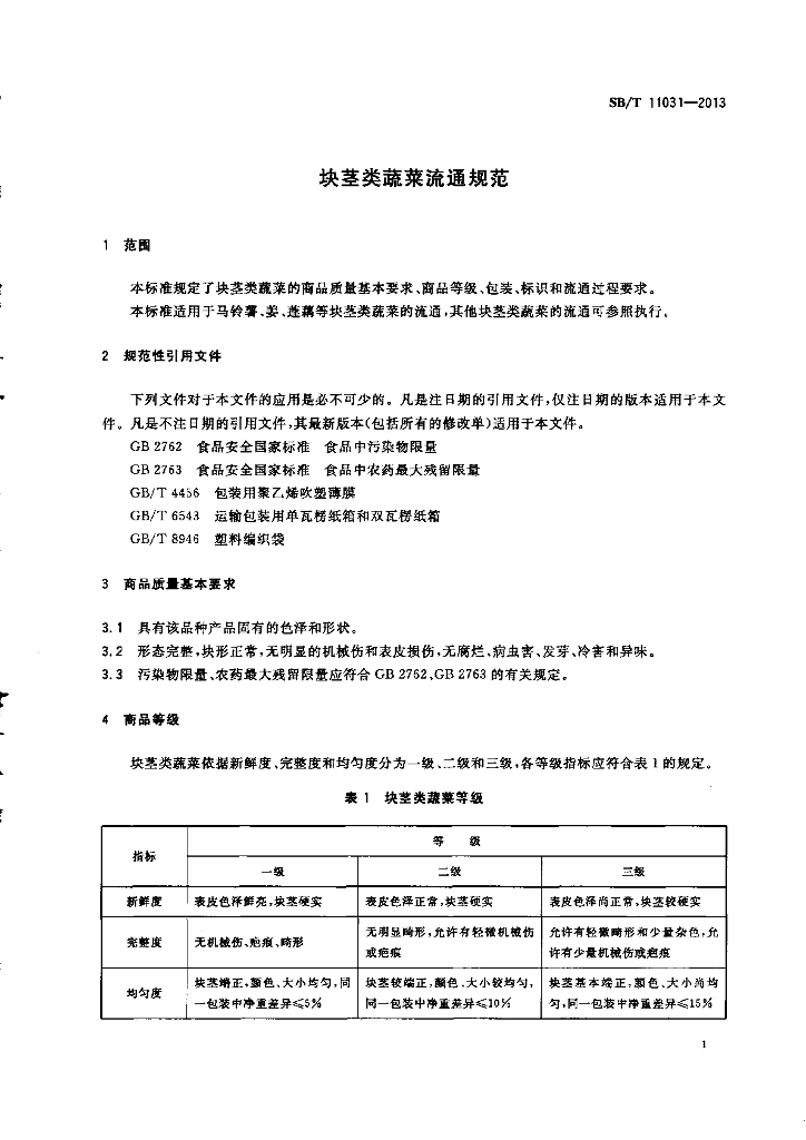 SB/T 11031-2013 块茎类蔬菜流通规范