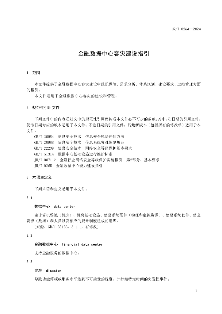 JR/T 0264-2024 金融数据中心容灾建设指引