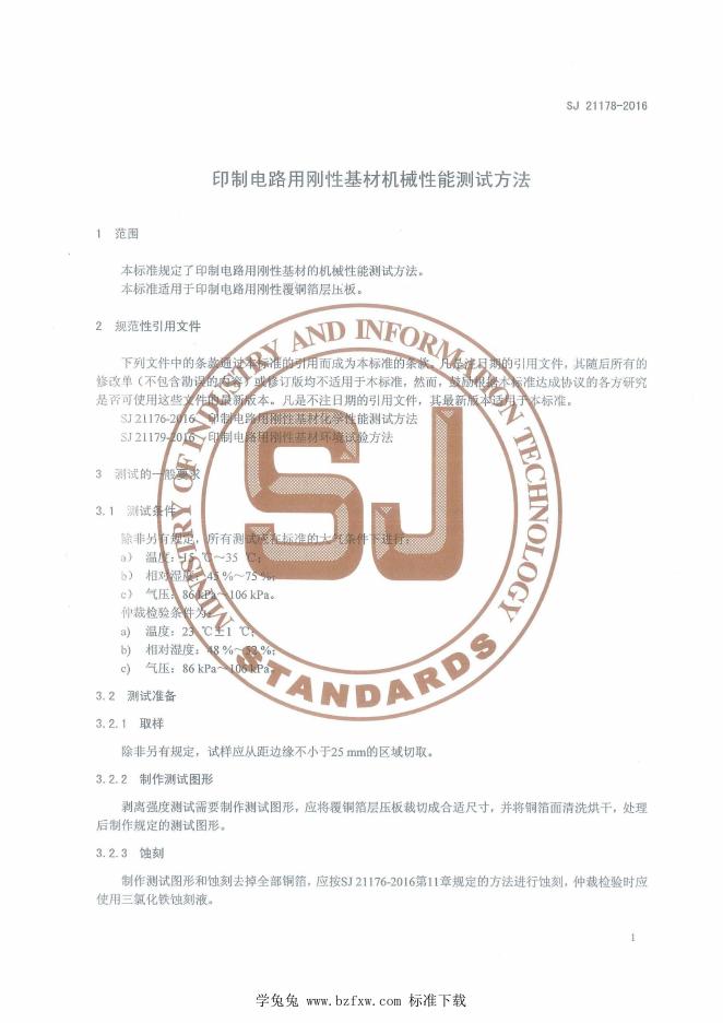 SJ 21178-2016 印制电路用刚性基材机械性能测试方法