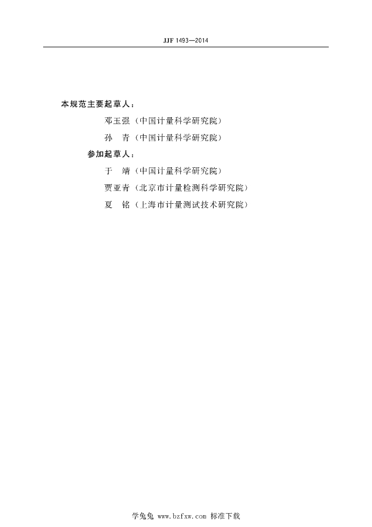 邓玉强(中国计量科学研究院)、孙青(中国计量科学研究院)、于靖(中国计量科学研究院)、贾亚青(北京市计量检测科学研究院)、夏铭(上海市计量测试技术研究院)