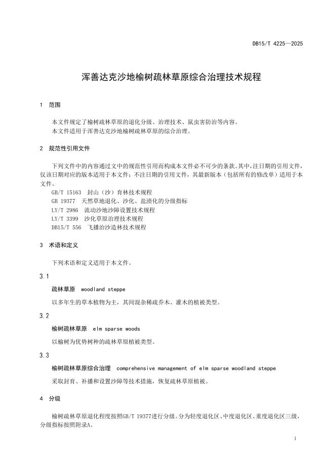 DB15/T 4225-2025 浑善达克沙地榆树疏林草原综合治理技术规程