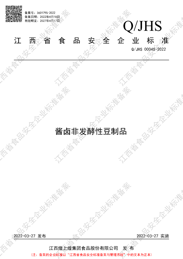 Q/JHS 0004S-2022 酱卤非发酵性豆制品