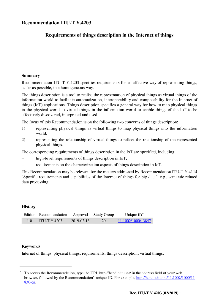 ITU-T Y.4203-2019 物联网中物联网描述的要求