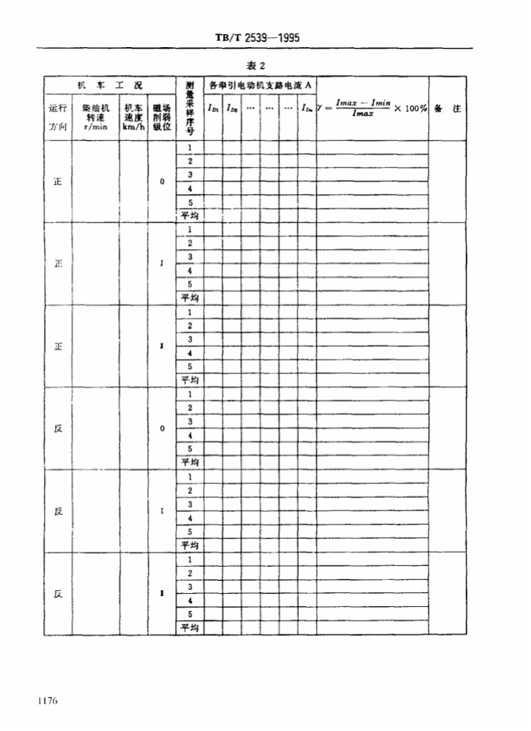 TB/T 2539-1995 内燃机车牵引电动机电流分配不均匀度试验方法