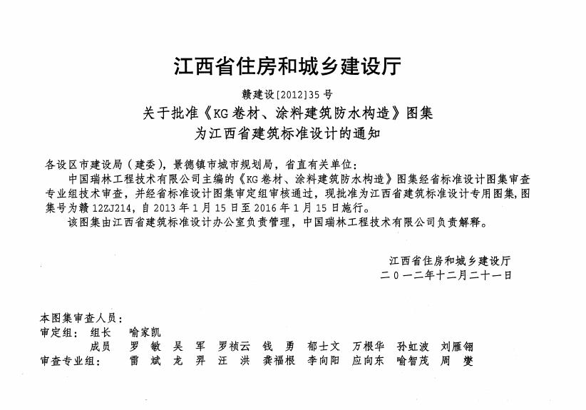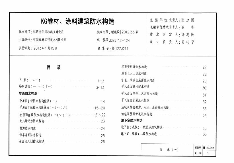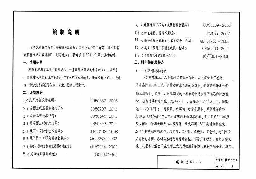 赣12ZJ214 KG卷材、涂料建筑防水构造图集