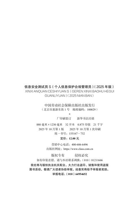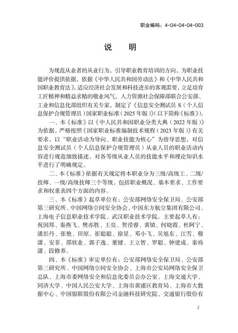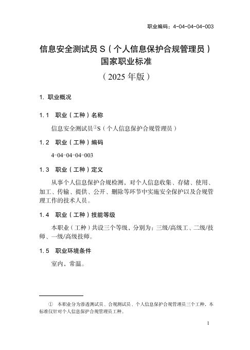 GZB 4-04-04-04-003 信息安全测试员S(个人信息保护合规管理员)国家职业技能标准(2025年版)