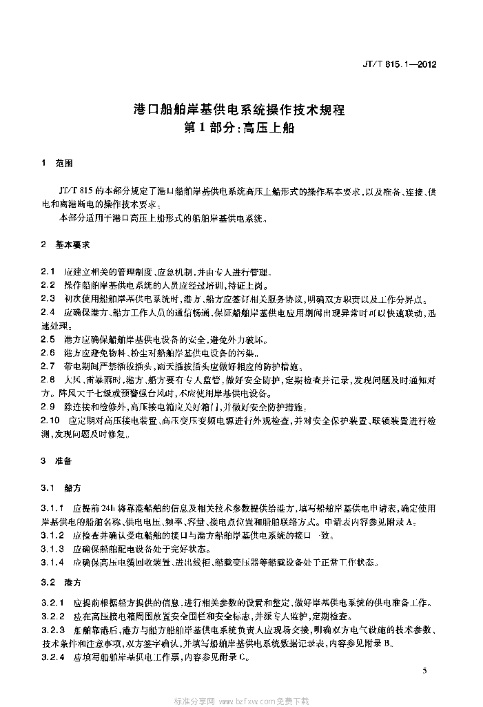JT/T 815.1-2012 港口船舶岸基供电系统操作技术规程 第1部分:高压上船
