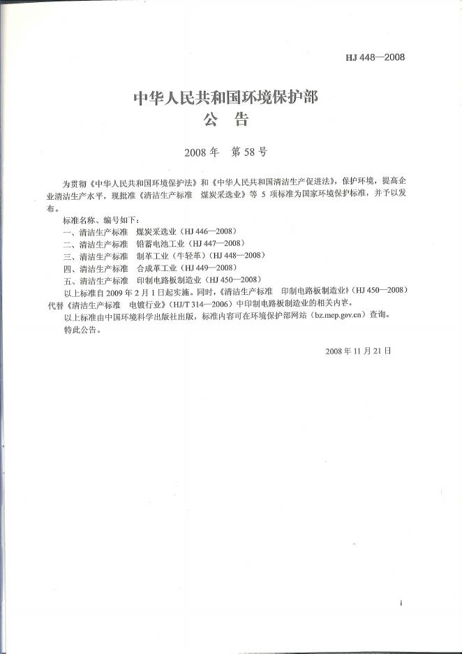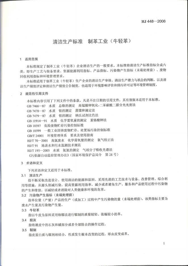HJ 448-2008 清洁生产标准 制革工业(牛轻革)