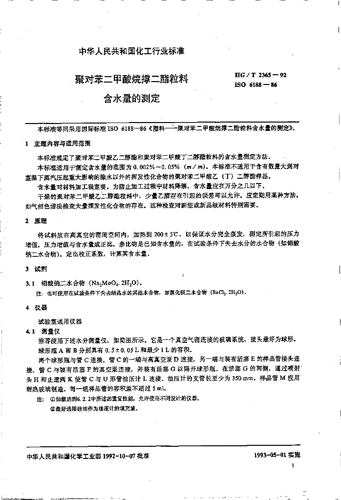 HG/T 2365-1992 聚对苯二甲酸烷撑二酯粒料 含水量的测定