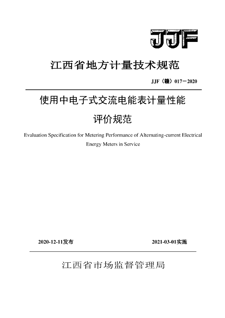 JJF(赣)017-2020 使用中电子式交流电能表计量性能评价规范