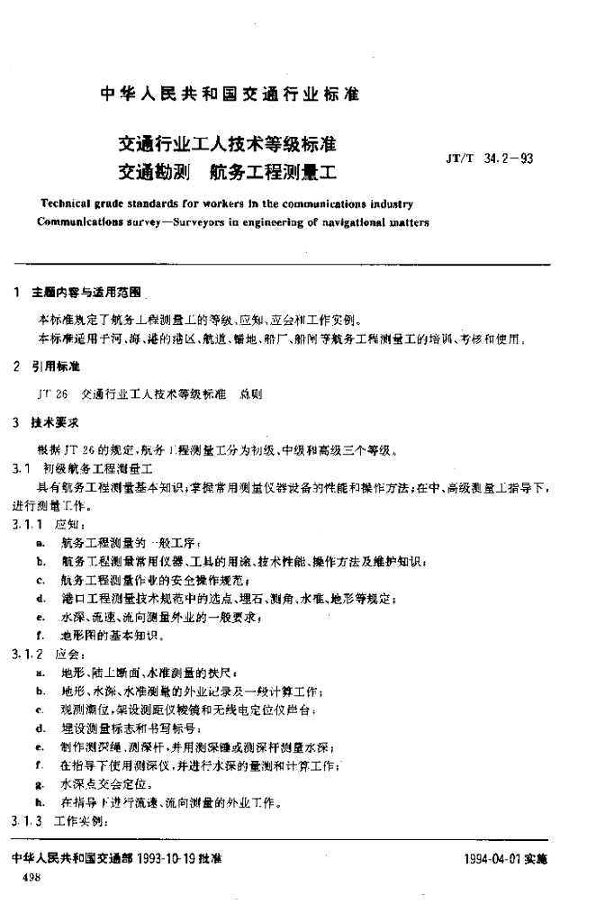 JT/T 34.2-1993 交通行业工人技术等级标准交通勘测航务工程测量工