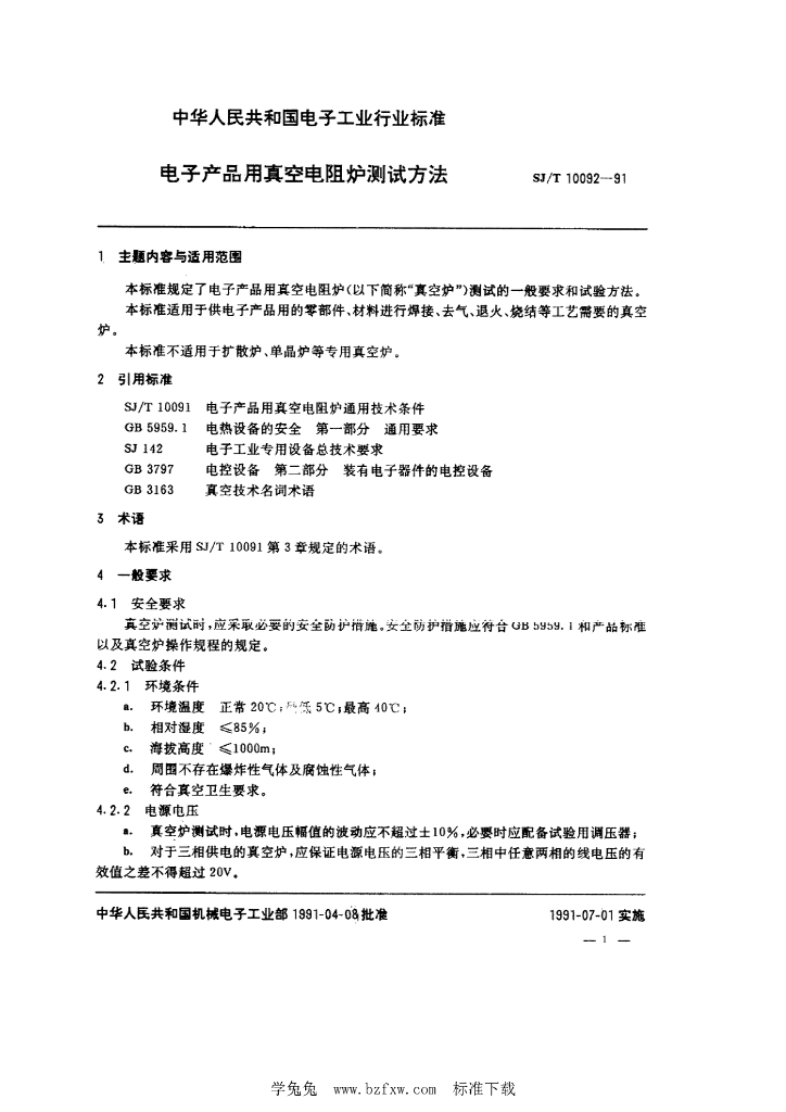SJ/T 10092-1991 电子产品用真空电阻炉测试方法