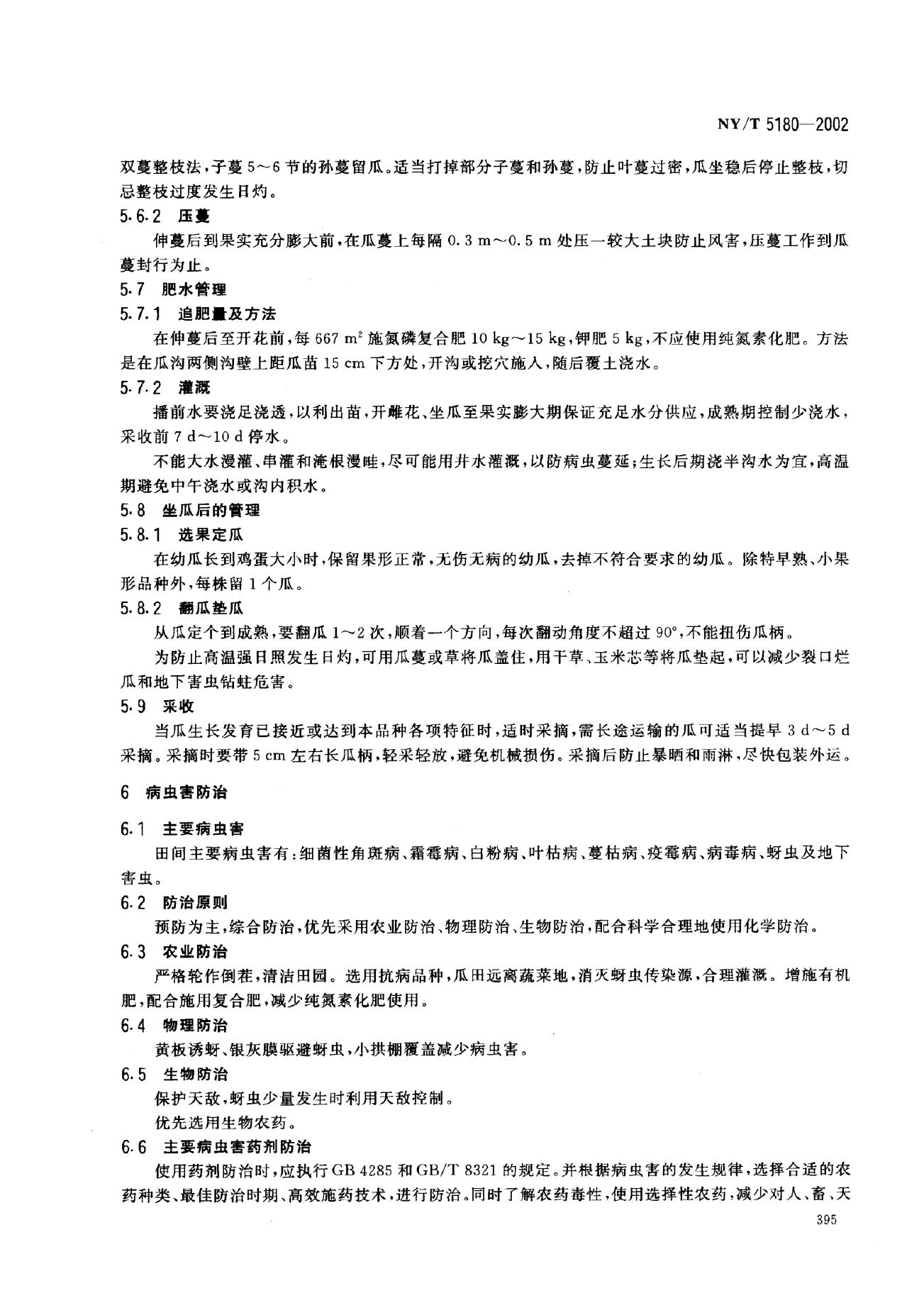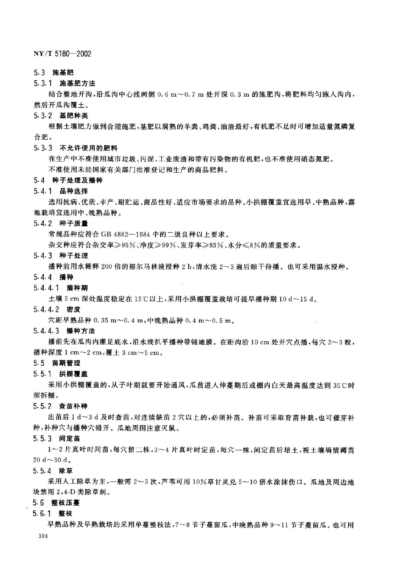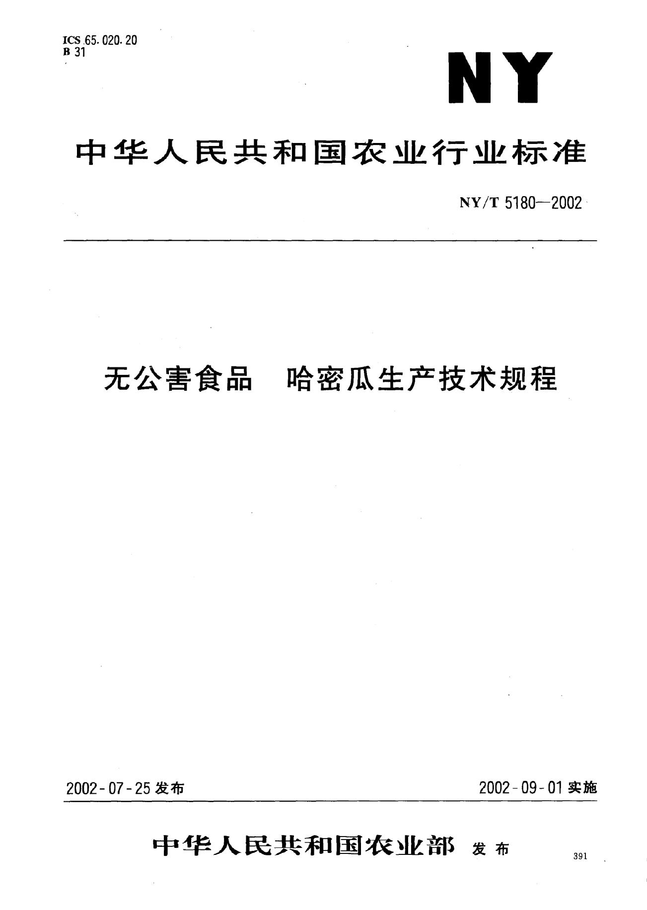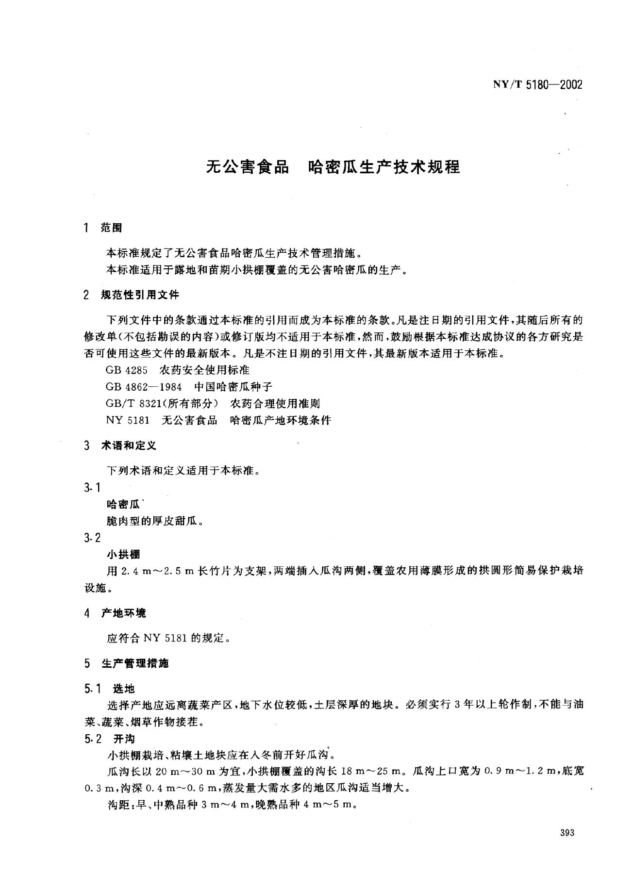NY/T 5180-2002 无公害食品 哈密瓜生产技术规程