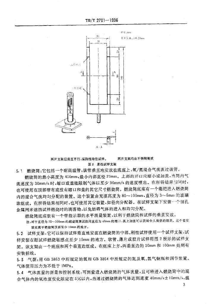 TB/T 2701-1996 塑料燃烧氧指数的确定