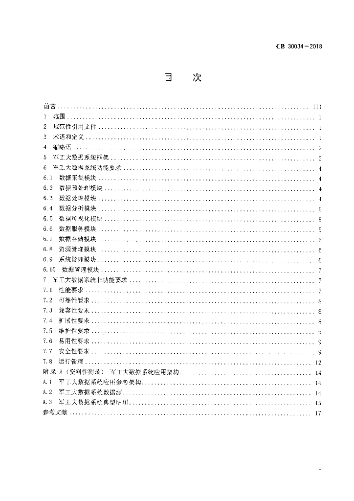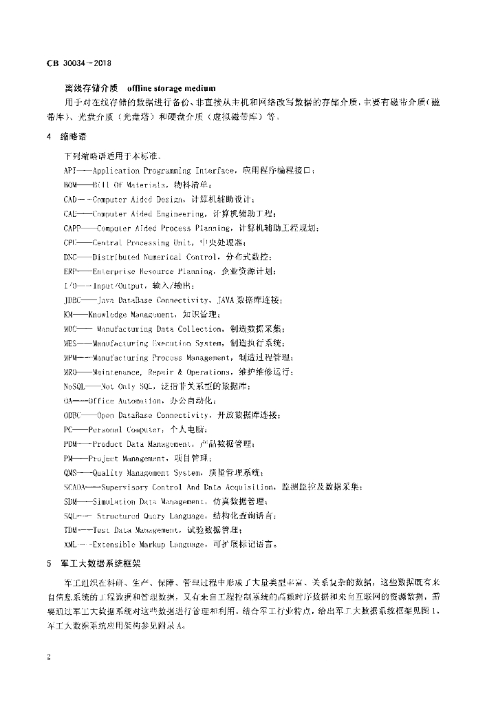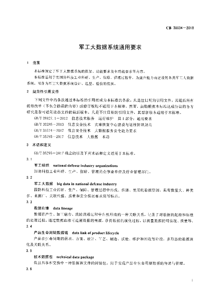 CB 30034-2018 军工大数据系统通用要求