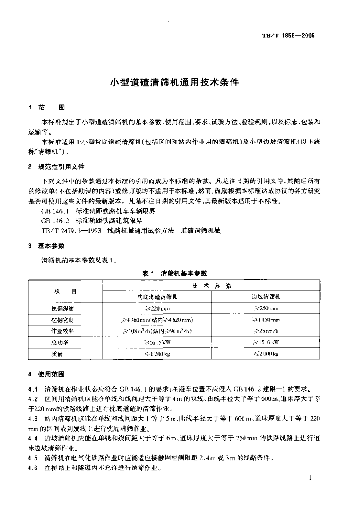 TB/T 1855-2005 小型道碴清筛机通用技术条件