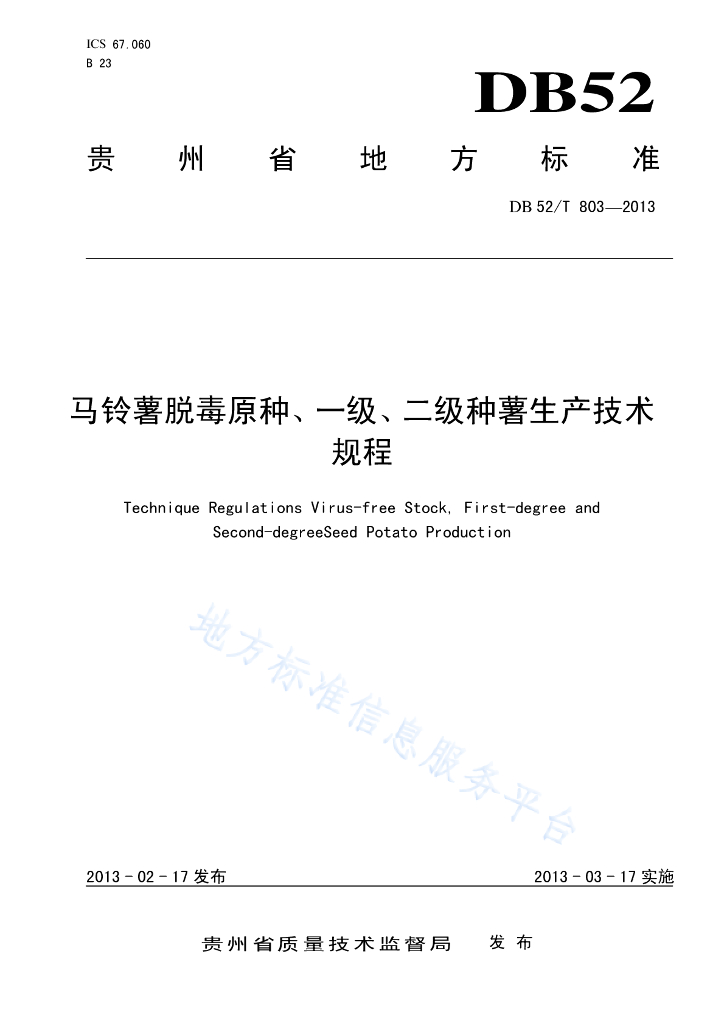 DB52/T 803-2013 马铃薯脱毒原种、一级、二级种薯生产技术规程
