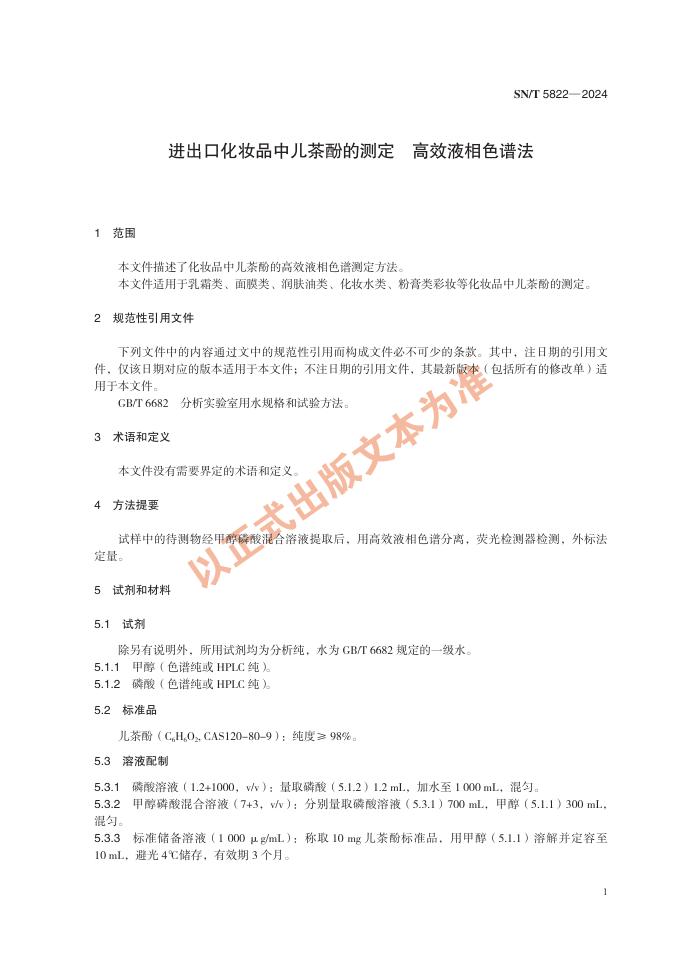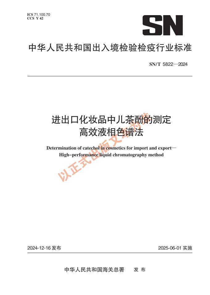 SN/T 5822-2024 进出口化妆品中儿茶酚的测定 高效液相色谱法