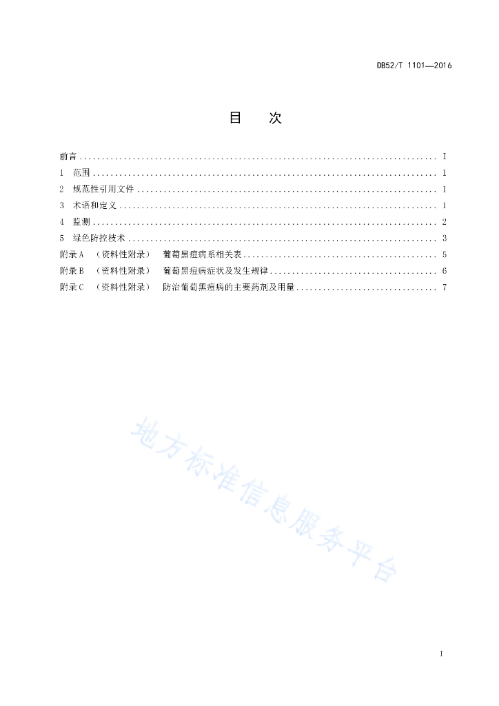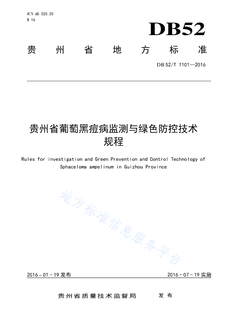 DB52/T 1101-2016 贵州省葡萄黑痘病监测与绿色防控技术规程