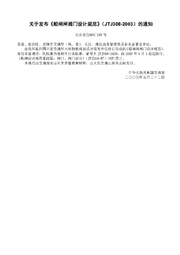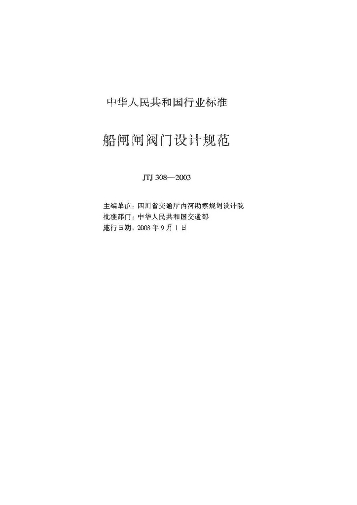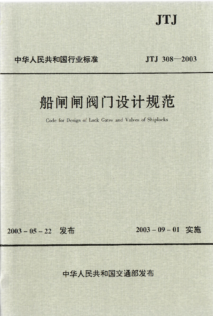 JTJ 308-2003 船闸闸阀门设计规范