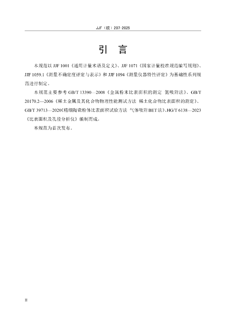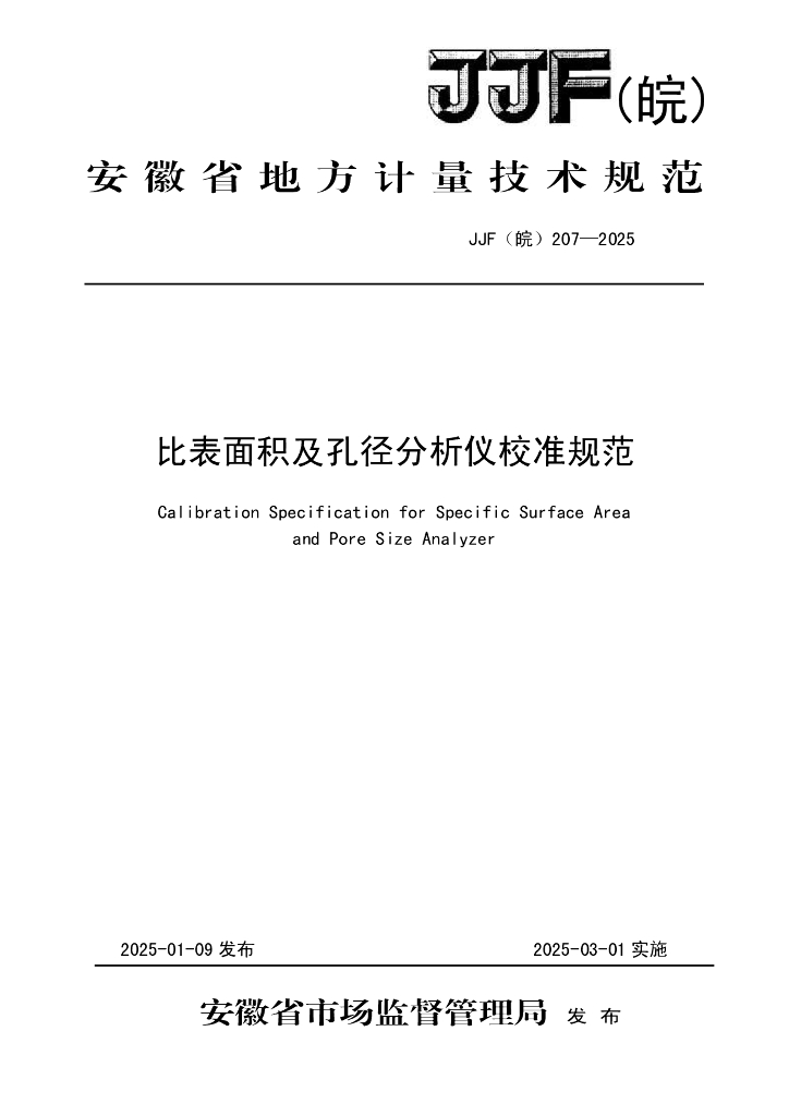 JJF(皖)207-2025 比表面积及孔径分析仪校准规范