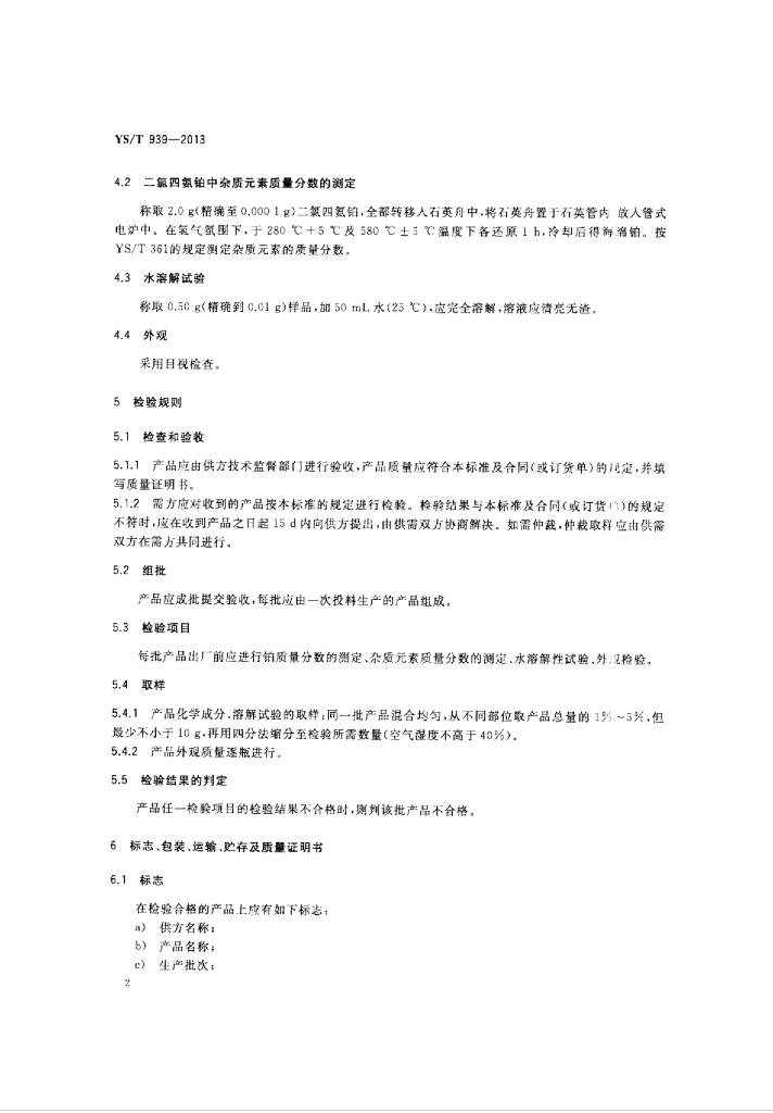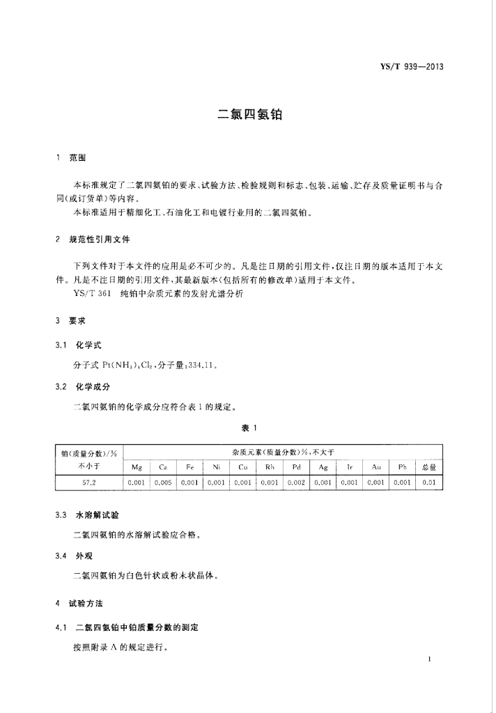 YS/T 939-2013 二氯四氨铂