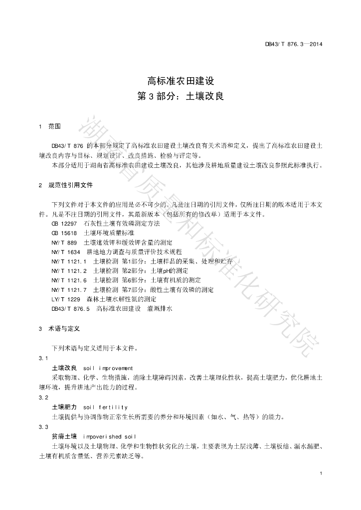 DB43/T 876.3-2014 高标准农田建设 第3部分:土壤改良